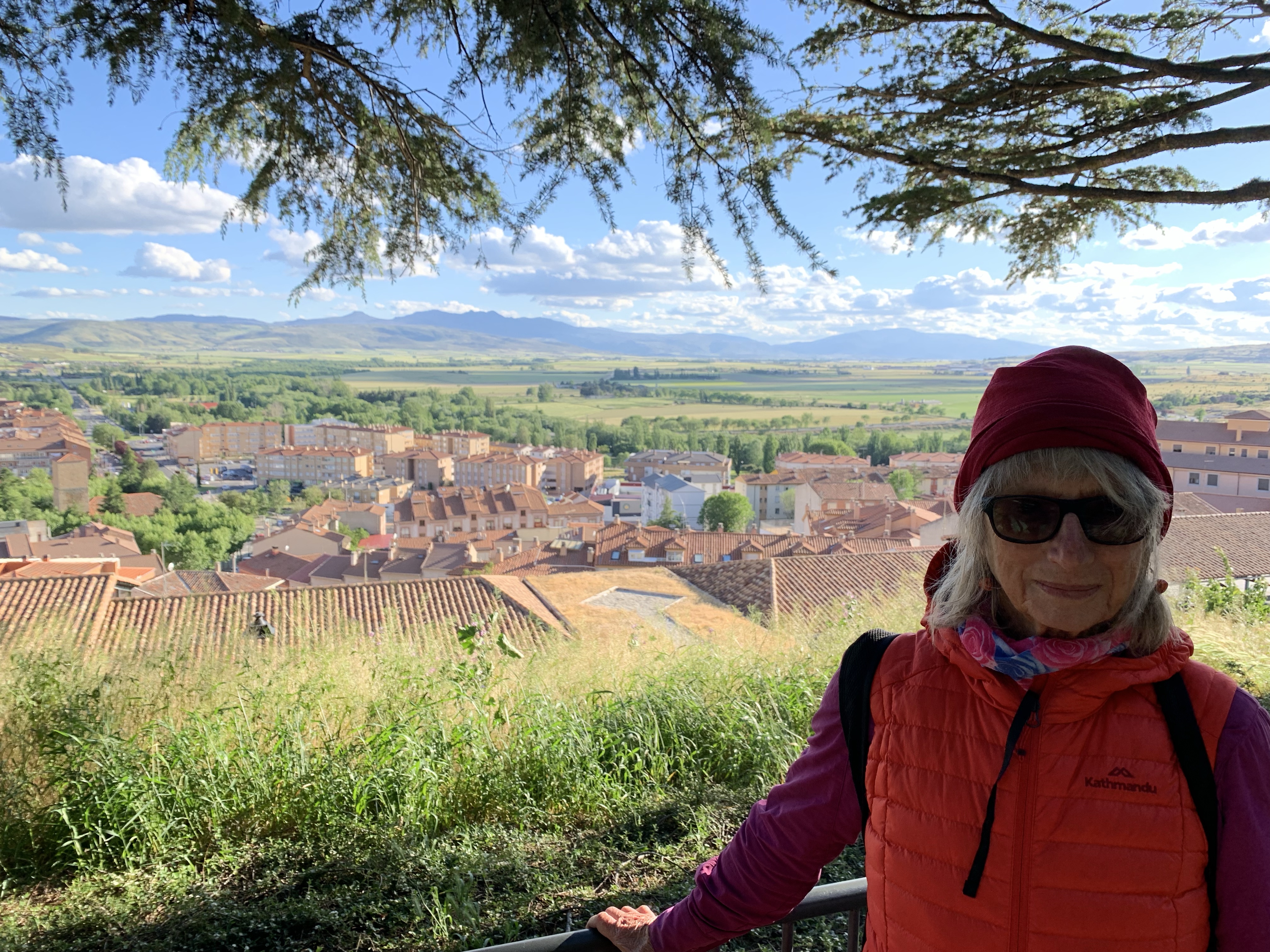 Then we took off for another walk around the walls and towards the start of the Camino. The sun came out and people walking, children playing a version of “first to the peg” at the bottom of the hill.