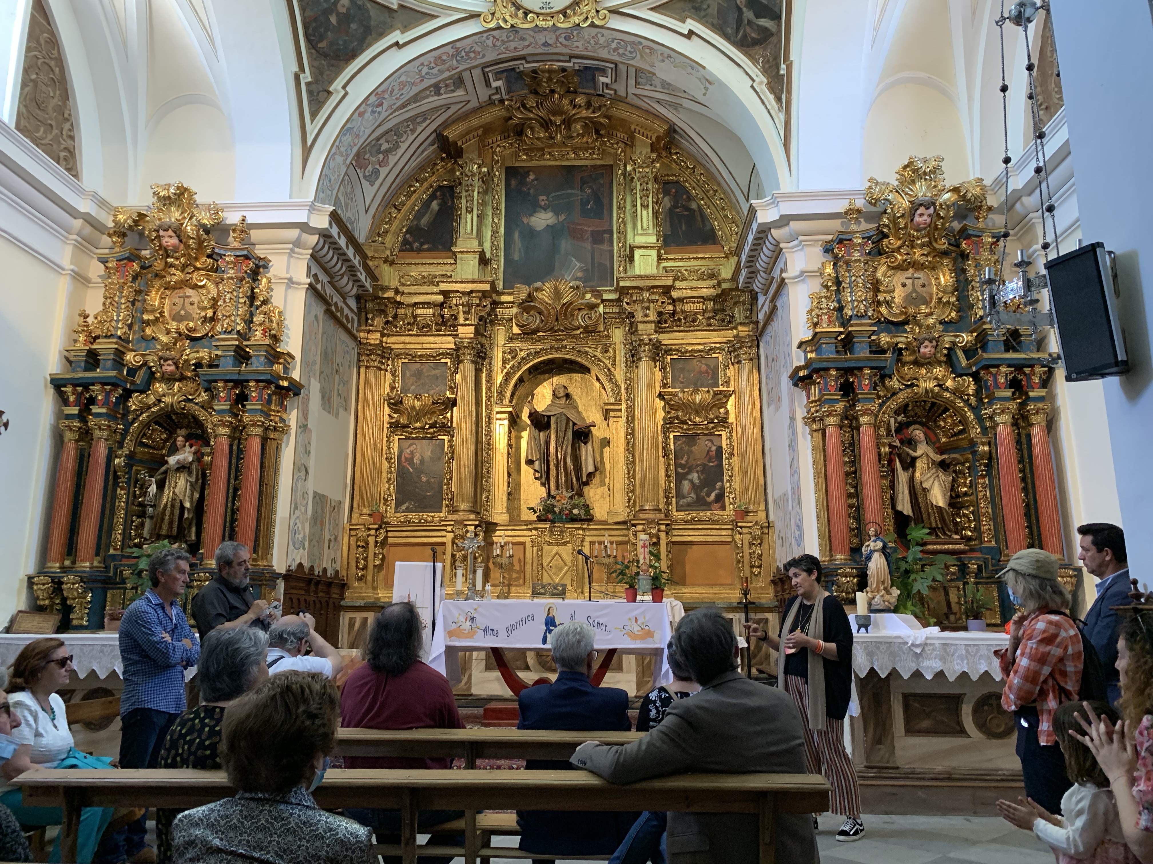 After the opening discussion/panel of Sanchez-Terran’s Collection we followed a guide on the historical route. I wished I had worked harder at my Spanish as she explained the historical background, stages of renovation, of several beautiful sites: the Carmelite Convent, the birthplace of St Juan de La Cruz, now a church, the Augustine Convent, monuments, palaces and chapels.Finally we entered the huge church, dating from the fifteenth century with an amazing wooden ceiling now fully restored .