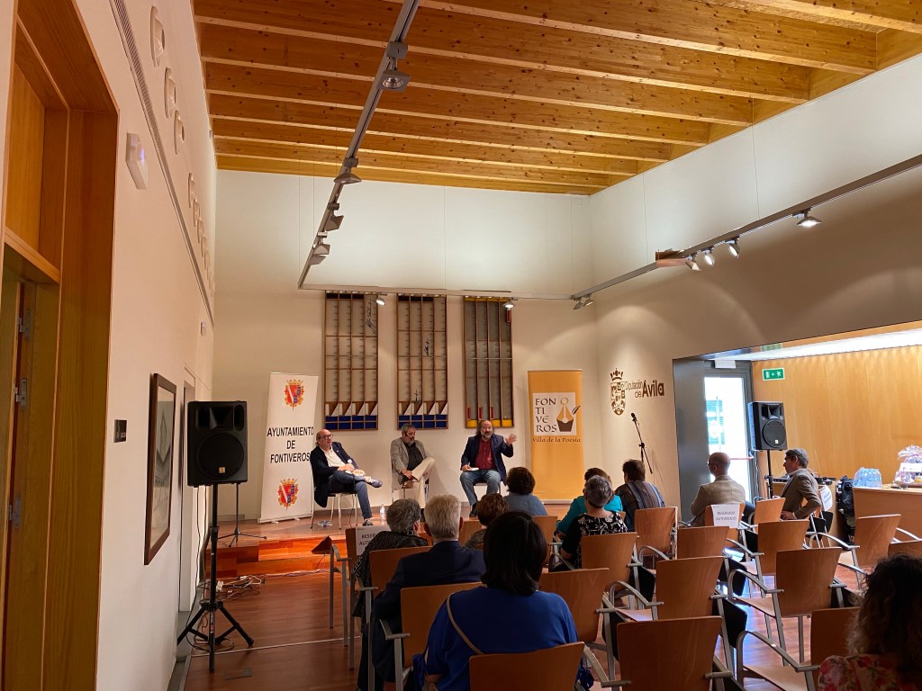 The town is awarding its poetry prize to Gonzalo Sanchez-Teran. He is the winner of the third biennial St Juan de la Cruz poetry contest. Today there was a poetry launch followed by a tour of the many ancient buildings and then lunch. This evening there is a concert, a presentation of the prize and Sanchez-Teran will read some of his poetry. This is the town where St Juan de la Cruz. was born, established a church and wrote. He is a well loved saint of this town and also beloved of poets I am told by our hosts at the lunch: “Fontiveros. Villa de la Poesia”