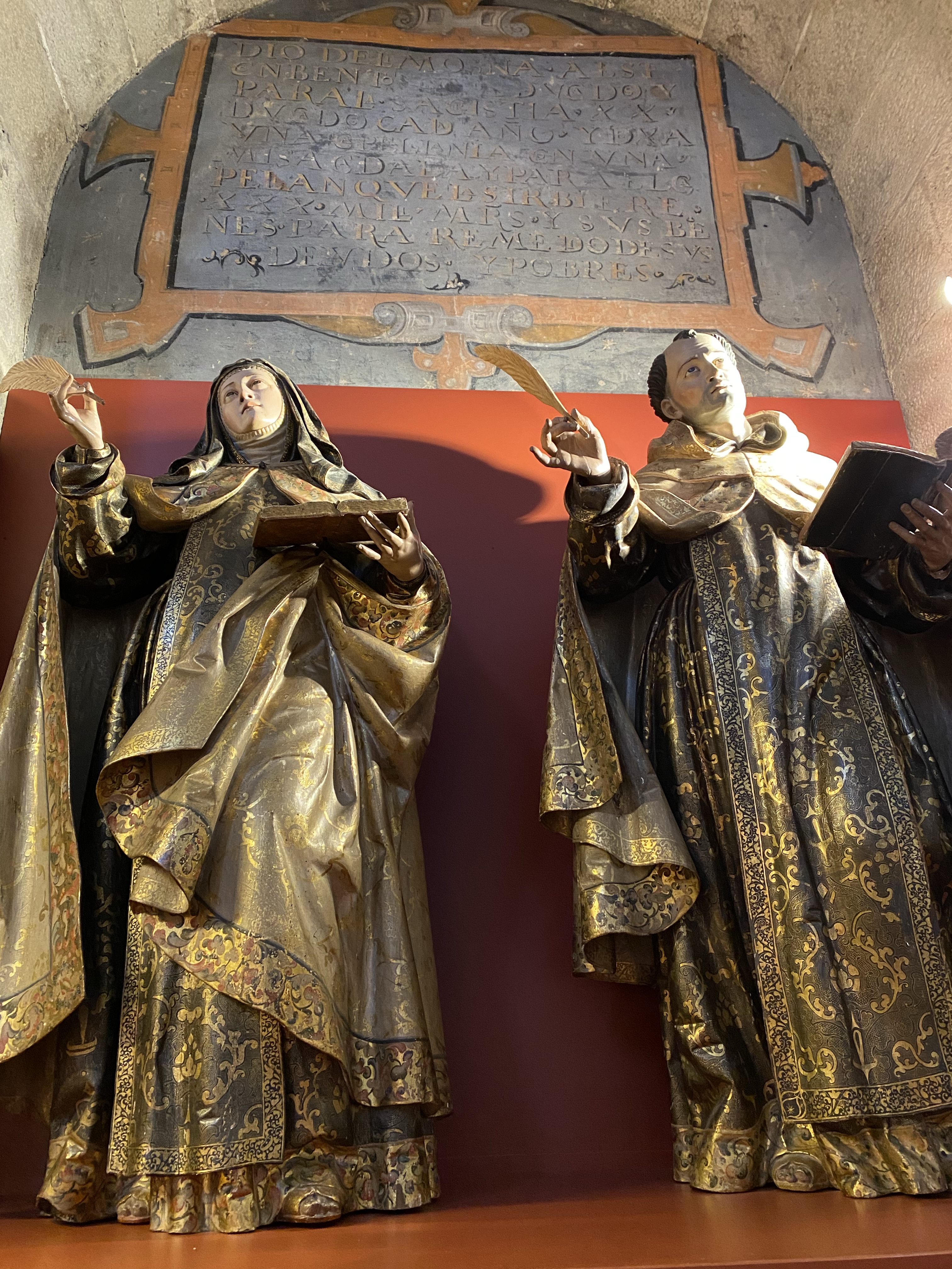 In the midst of the glaring religiosity, the paintings of saints in various poses of humility, suffering, (transverberacion) there is a strong sense of the woman. From the books she wrote, the convents she founded, the papal bull of her canonisation, the memories of her male confessors, her spirit shines through. I could look at the huge urn and the reconstruction of the room where she died, complete with the folded arms veiled eyes image, and see a remarkable woman who kept faith with friends and her God, and forged ahead with her convictions.
