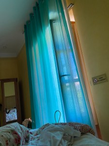 As expected the bar under our room was full and voices rose all night in a background to our breathing in and out, or coughing now with the Covid. The earplugs kept on falling out.