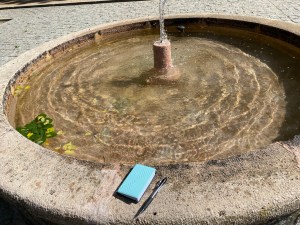 I’m attracted by a sign on the steps towards the aqueduct “Puerta de La Luna”. The gate of the moon. Steps lead through an archway to a garden alongside the old wall. In the distance are the mountains, soft and blue this sunny morning, and the few clouds above are mere wisps of cotton. I’ve walked here before, but this time I’m meandering and thinking. I’ve missed the corners and shadows before. There are tiny bits that maybe I can call regalos (gifts) : shapes and textures and colours, small scratched plaques that commemorate poets and statesmen, a sparkling fountain.
