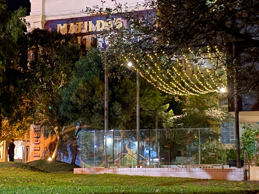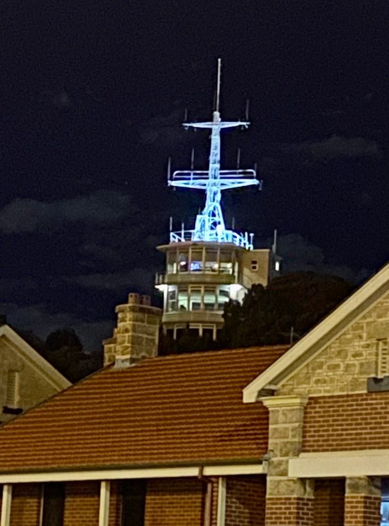 I turn around at the Moreton Bay fig tree, opposite Clancy’s Fish pub at the entry to Fremantle. No time to stop for a beer. The way back is unexpectedly bright as there is a full moon tonight:I move from Saint Patrick’s Basilica towards the old bridge. A glimpse of Cantonment Hill, a long look at the Navy Store with the octopus reaching its tentacles across the peeling paint. The backdrop of bright moon and swirling cloud creates a Tolkien -like space, mysterious and other worldly.