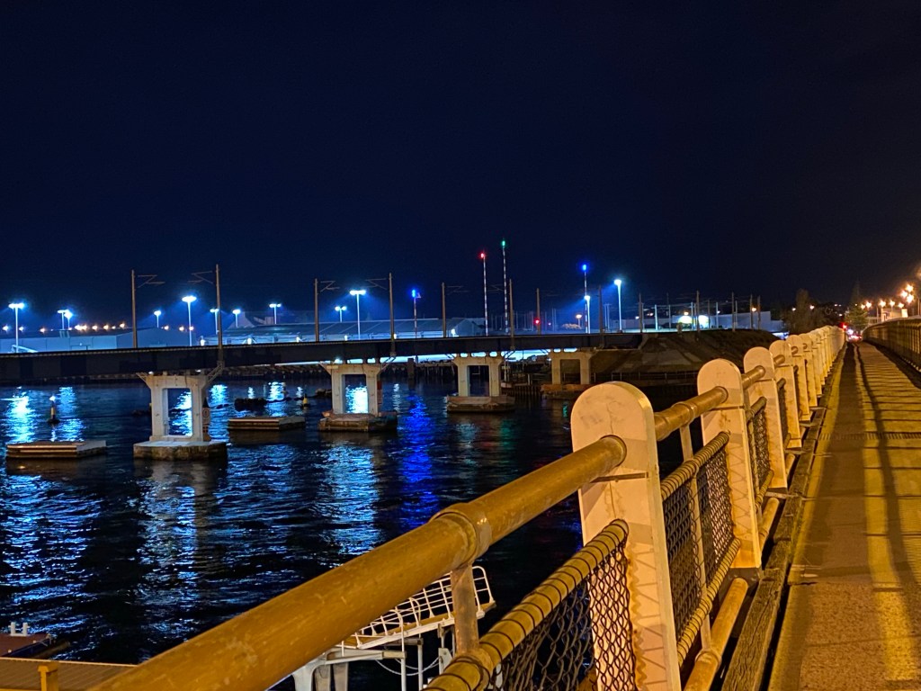 I reach the old traffic bridge and look over the rails into the water below. No one fishing tonight. Unusually, no cyclists or walkers either.