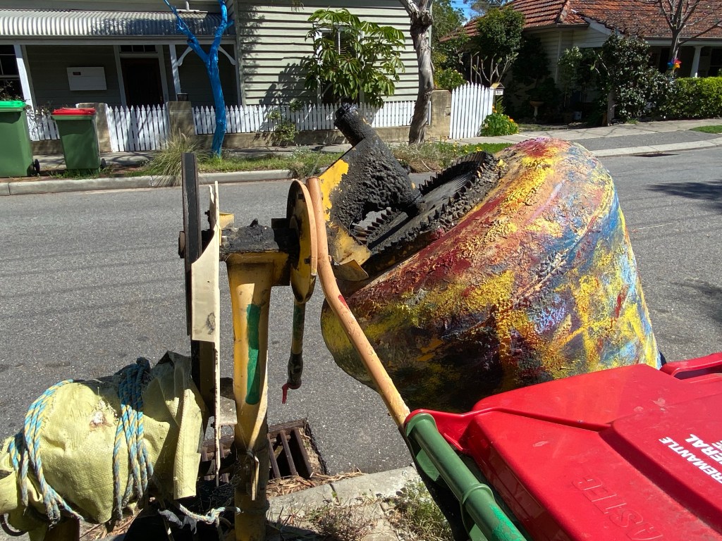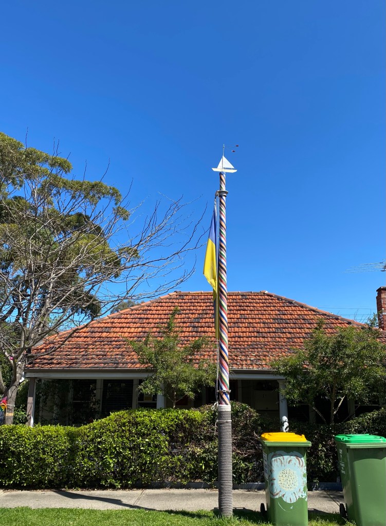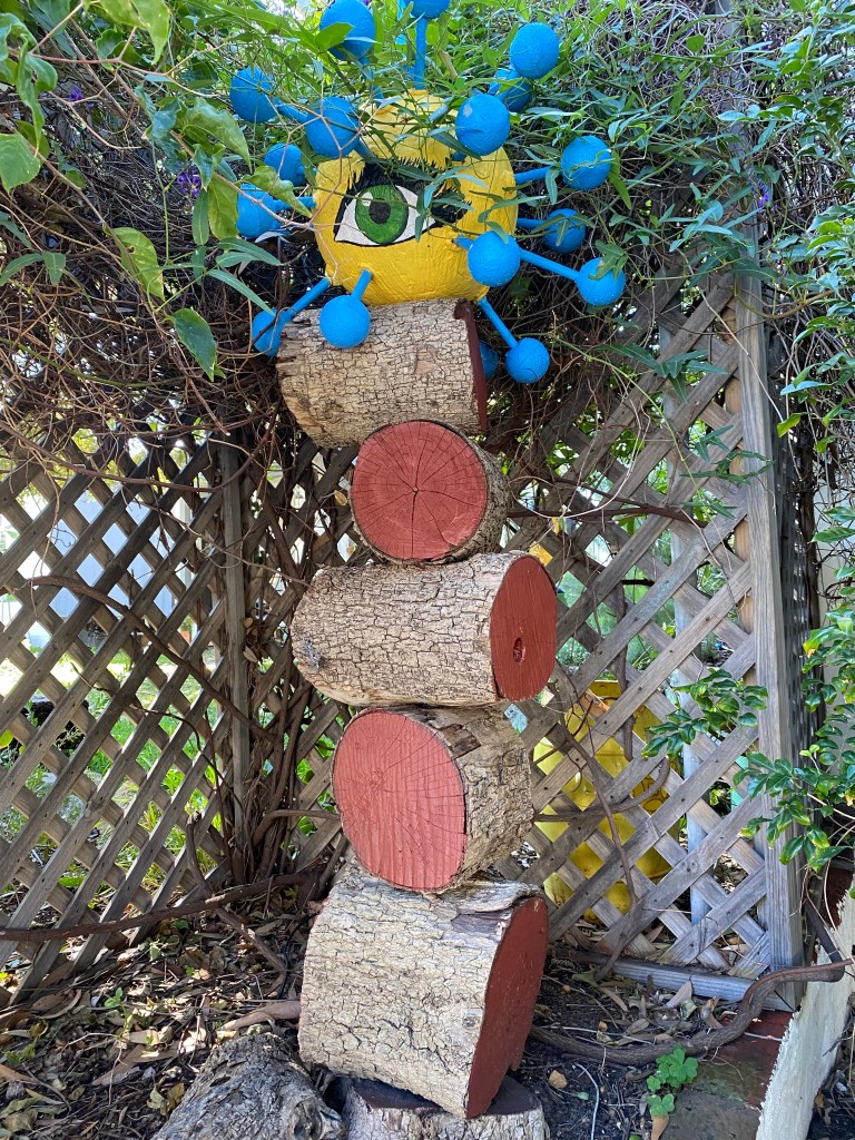 This is just a beginning .Bright totem like structures stand in many front yards or on verges.