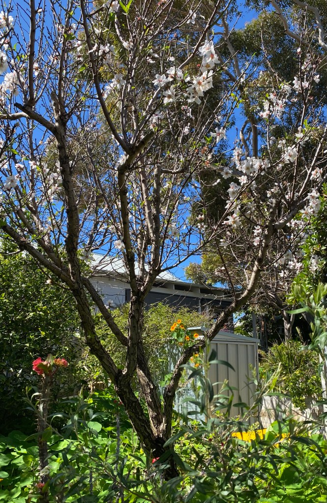 How wonderful is this day. In the space of half an hour my spirits have lifted and Díaz has fallen asleep so am right for a quiet coffee. We have reached the end of the street . I peer into someone’s backyard through a wrought iron gate: a nearly magic garden. Díaz dreams on.
