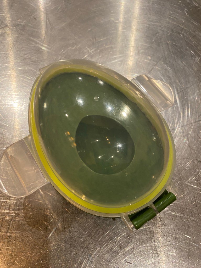 I have been wrapping half eaten avocados in cling wrap, and recently in brown paper. Usually 2 days later I chuck out an expensive section of health giving fruit . Now I have an avocado storer. I felt excited as I put it into my bike pannier and rode home.