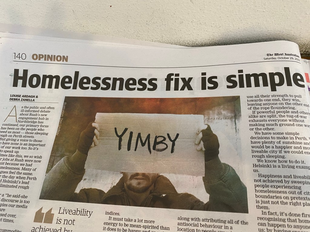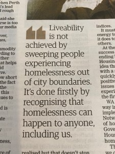 I have just finished Alan Carter’s Heaven Sent, a novel which is set in Fremantle and revolves around homelessness and the problem of dealing with people fairly and responsibly.( Incidentally a good crime novel with his likeable main character, Detective Cato Kwong)