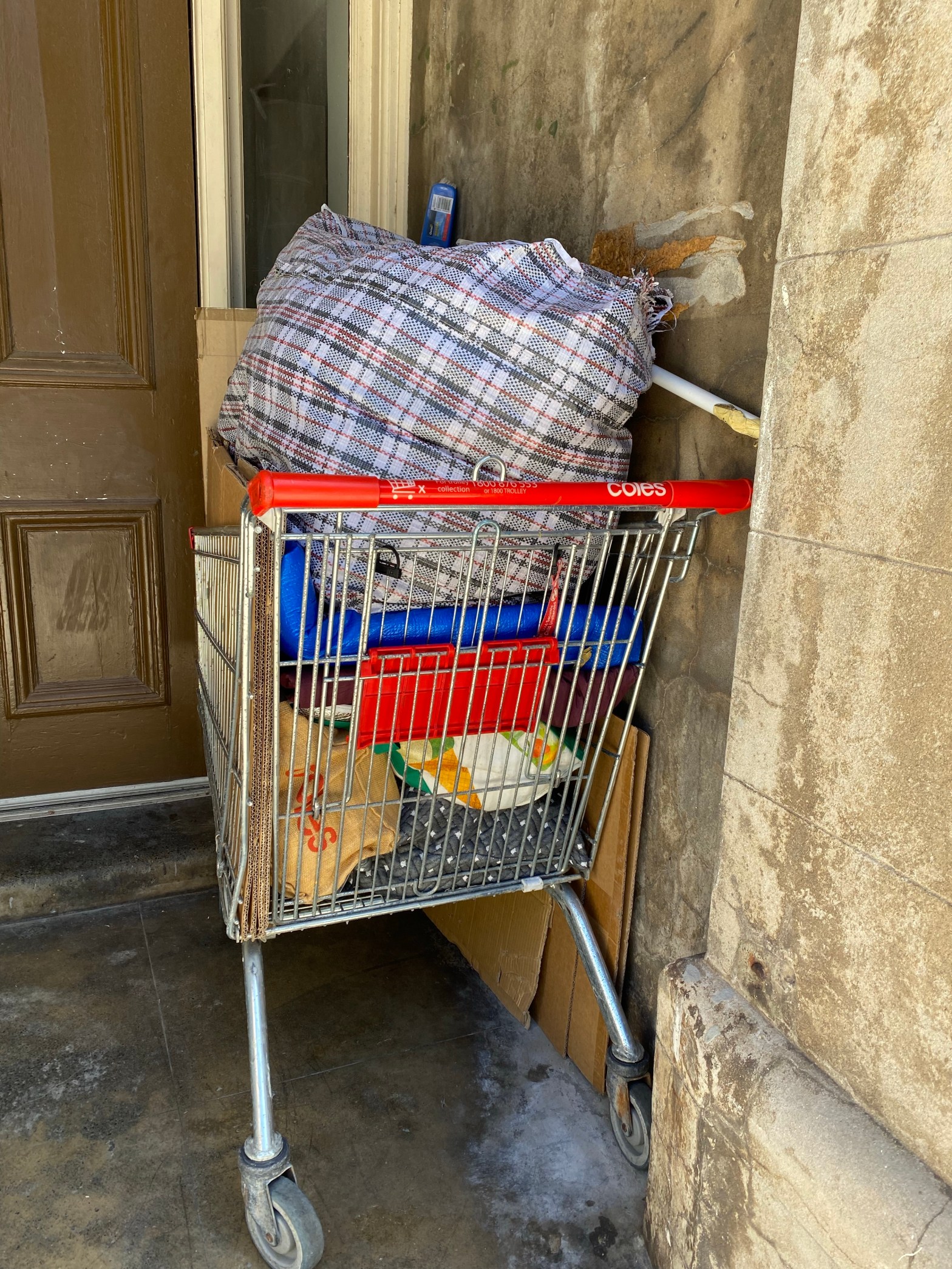 It’s 8.30 am and I’m pushing my grandson down South Terrace in Fremantle, just up from the station. Already I have passed 3 sleepers. Huddled in doorways, in alleys , emerging from the night sleep and blinking in the morning light, or blankets pulled over heads. Some have left their posse to start their day, leaving a bundle tied up on the ground in the shadows. Others are pushing a shopping trolley down the mall. Towards the toilets maybe, or to sit on the benches placed in straight lines under trees .