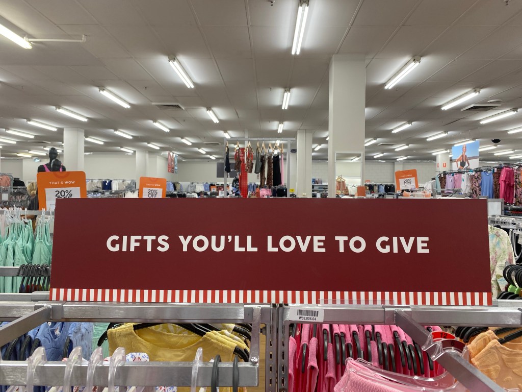 Greeted by red versions of merry Christmas, lollies and rolls of Christmas paper, decorations , and reams of things to buy . Yes, and the requisite jingles to do my head in .