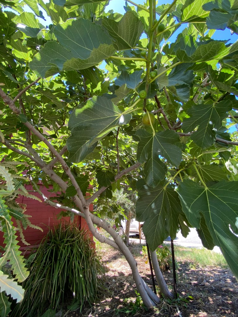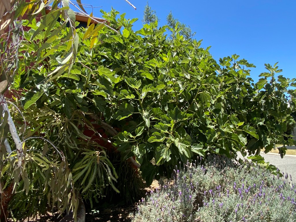 I was out on the garden again fiddling with my suddenly huge fig 🌳. I’m surprised at how it has still managed to sprout new branches , despite vigorous pruning a few months ago. Moreover it has secretly been producing figs. Maybe it is hiding them from the cockies that eat them every year, but I only spied the nearly ripe ones when I reached under the canopy to remove weeds.