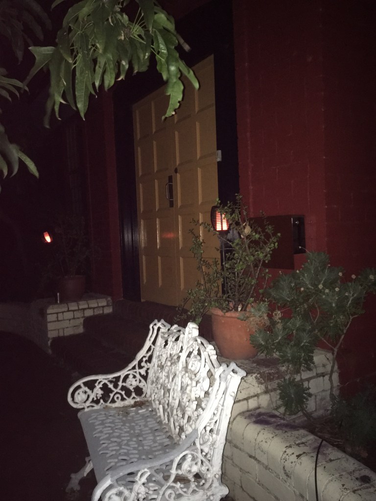 This is a magic night Cactus crawling up the old wall North Fremantle Soldiers memorial ( 1923) On the corner , the outside grassed area of Propeller Cafe is sparkling with lights and the moon