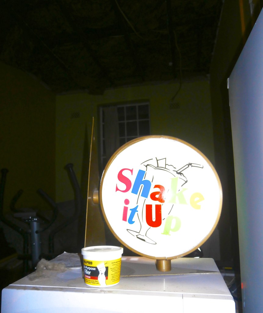 Then it’s back the way I have come.Moonlight all the way. This time it’s as if I’m in a fairyland: plants twist up multicoloured brick work, steel ladders and windows seem to slant towards the light to form dancing shadows. The trees stand firm, only their lighter branches and leaves stirring in the night breeze.